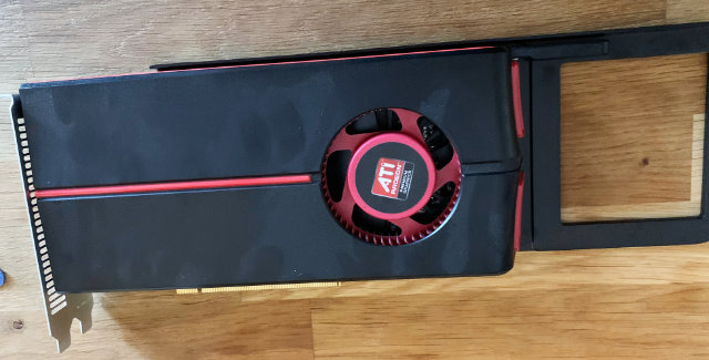 Power for the RX 580 is an easy story. Just replace the 5770’s mini six pin to six pin with a two mini six pin to eight pin cable.