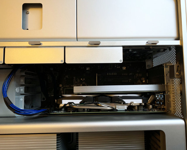 I’ll confess, I’m a little concerned at this point about airflow. Looking at the NVMe card, it’s going to be flush right up against the RX 580. Heat might be a concern here.